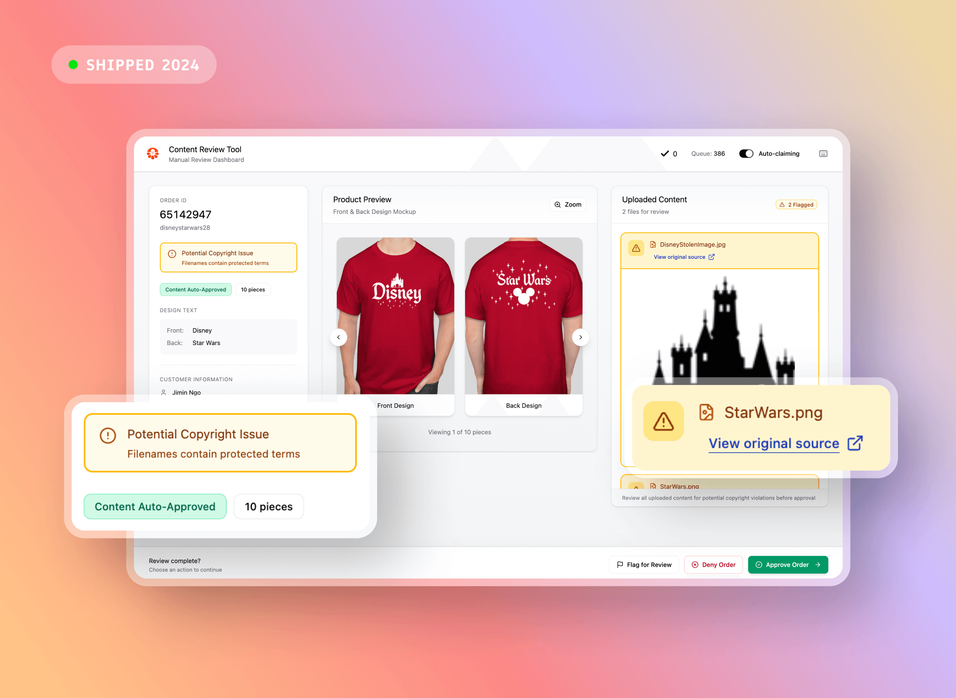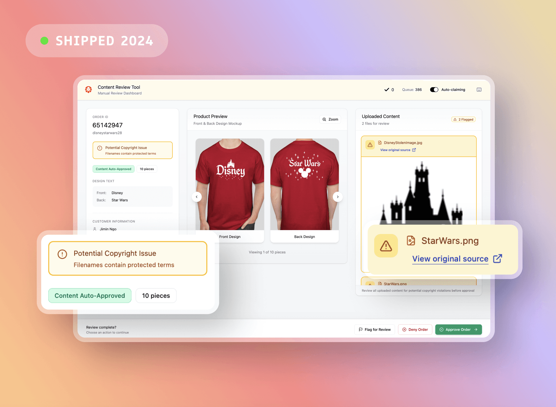 Led design for a content moderation tool using advanced machine learning, streamlining detection of inappropriate and trademarked content. My scalable solution saved $400k in six months and was fully automated within a year, reducing operational burden and cost.