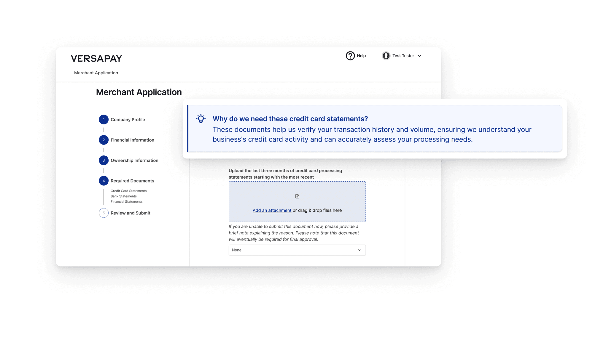Merchants faced a long, confusing PDF document and relied on support to walk them through the application on the phone.