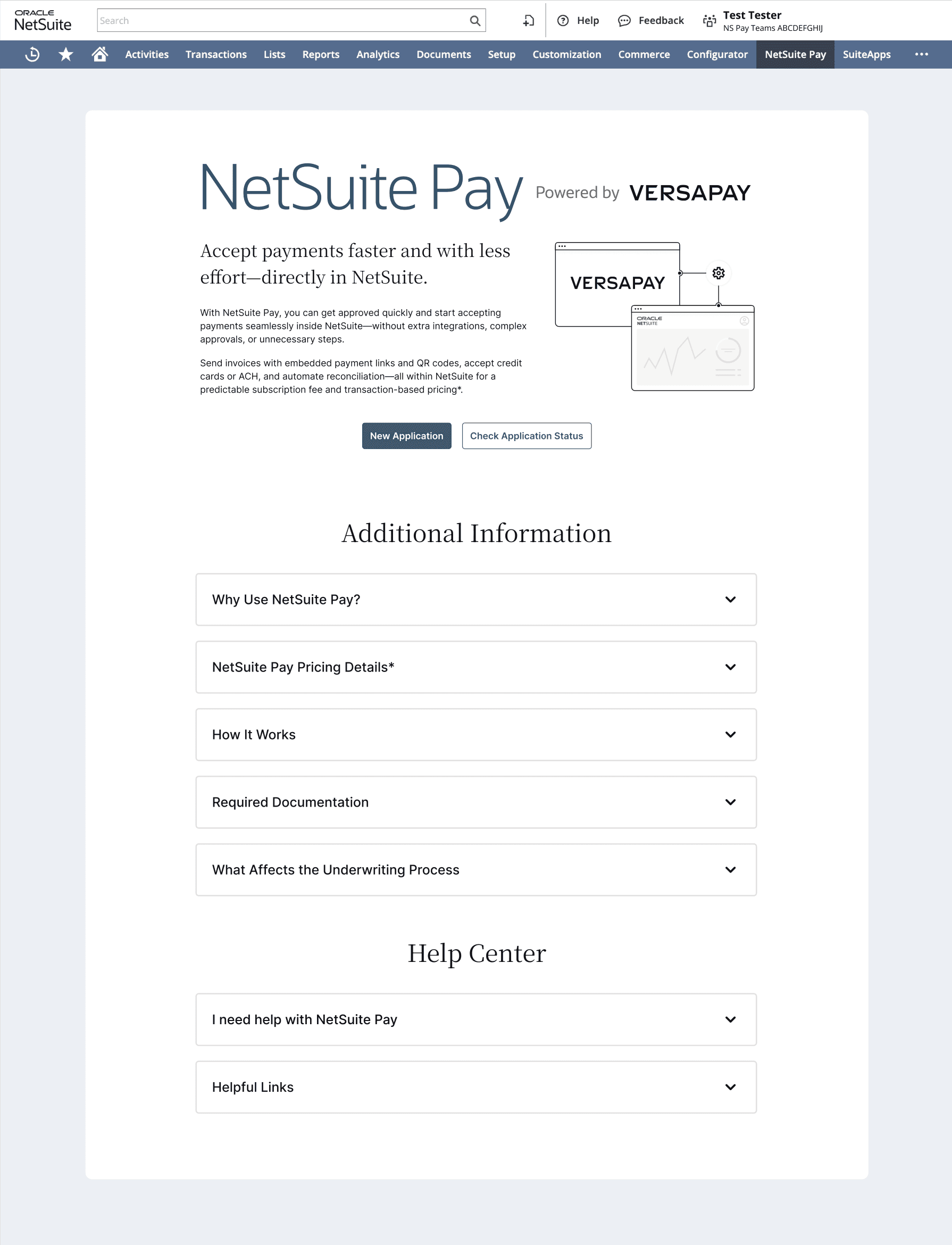 Customers would look for NetSuite Pay as a potential payment processor and find a blank landing page