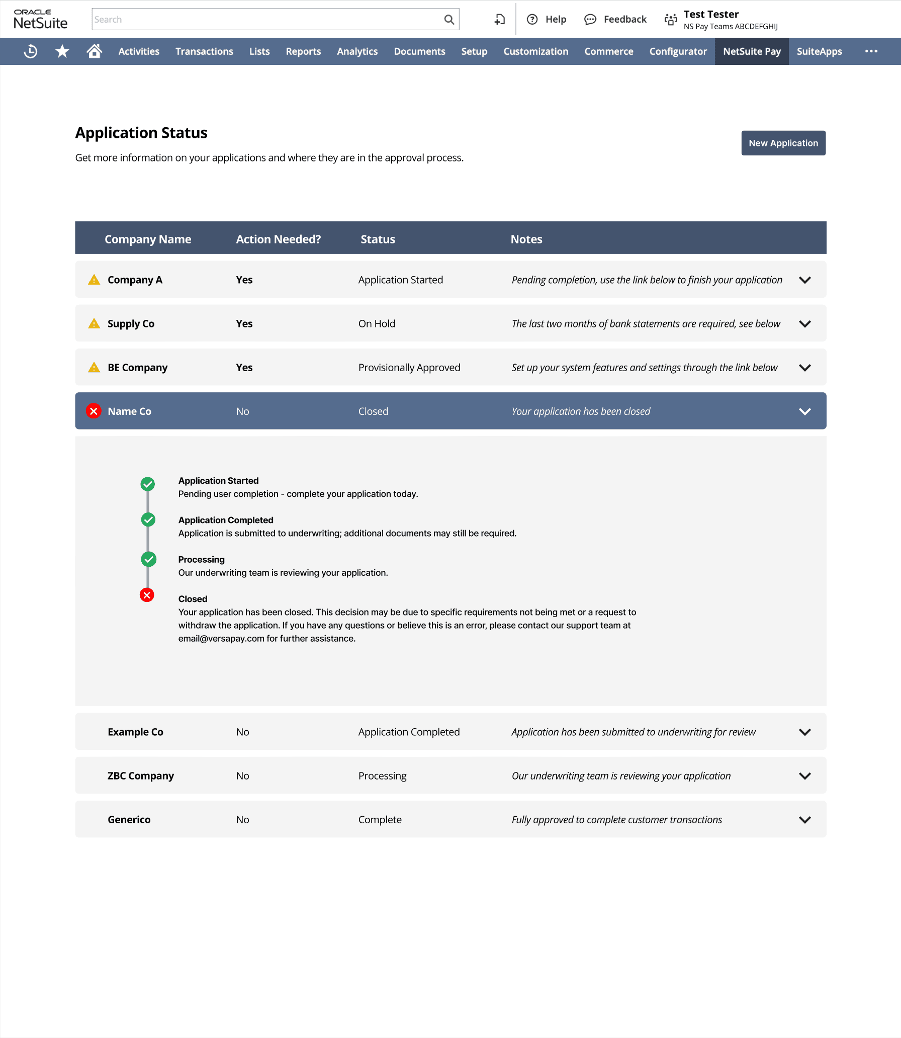 Designed NetSuite Payโs landing and status pages to transform a blank, broken experience into a clear, trustworthy entry point. By showing relevant information and a transparent application status system, I reduced confusion, unblocked onboarding, and improved funnel conversion where clients were dropping off.